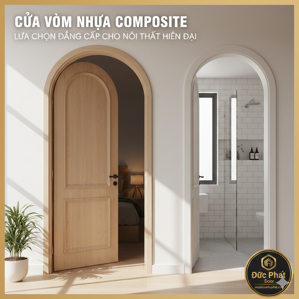 Khám phá mẫu cửa vòm nhựa composite sang trọng, cách âm tốt và chống nước 100%. Đức Phát Door cung cấp giải pháp cửa vòm thẩm mỹ, bền bỉ cho phòng ngủ và toilet.